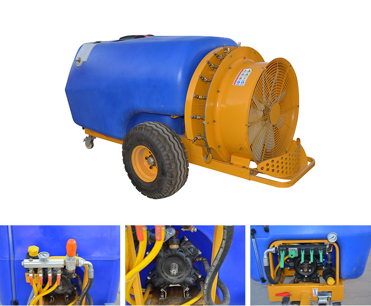 Издржлив структурен дизајн: Цевките на AirBlast Trailed Sprayer се направени од материјали кои се отпорни на 'рѓа. Течната пумпа е двоцилиндрична дијафрагма пумпа. Овој дизајн ја одржува машината добро да работи долго време. Раката за прскање може да се преклопи и автоматски да се врати на првобитното место. Ова го спречува оштетувањето од пречките на локацијата. Исто така, овозможува опремата да трае подолго.