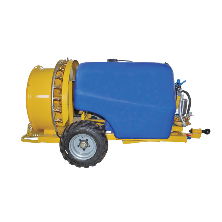 Овоштарниците Airblast распрскувачи можат брзо и ефикасно да покријат голема површина. Тој е управуван од моќен вентилатор и може да генерира силен проток на воздух, кој може да навлезе длабоко во крошната на културата за да обезбеди униформа дистрибуција на хемикалии, хранливи материи или пестициди.