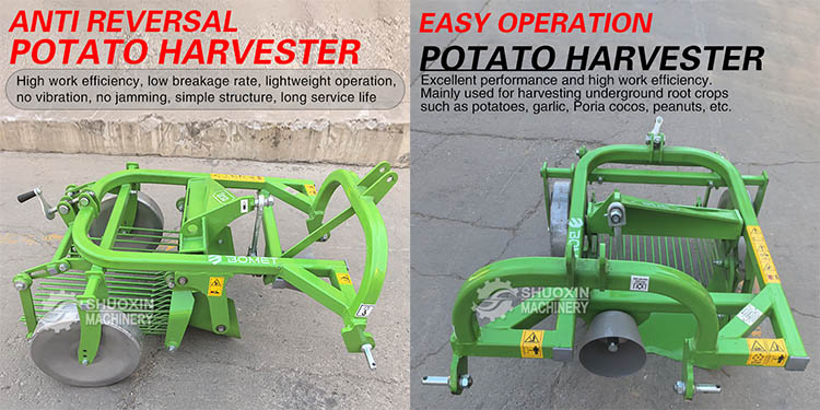 Интегрираниот уред за копање обезбедува точност на длабочината на копање, додека лебдечкиот секач е дизајниран за ефикасно сечење на плевелот и намалување на отпорот при копање. Тој е многу погоден за мали трактори и може нежно да ги извлече компирите од почвата без да предизвика штета. Тој е особено погоден за мали одгледувачи.